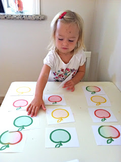 Today we've been doing lots of apple projects, singing apple songs, reading apple poems and duh, eating apples. Here's a little glimpse at our first day of school. And as my student said herself, "Mommy, I didn't even cry at school!" I must be an amazing teacher.